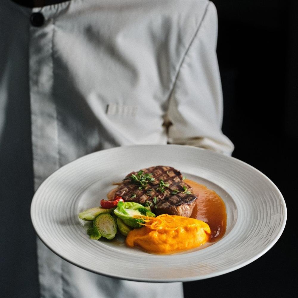 Sous Vide Beef Fillet, Carrot and Orange Puree, Brussels Sprouts and Thyme Jus